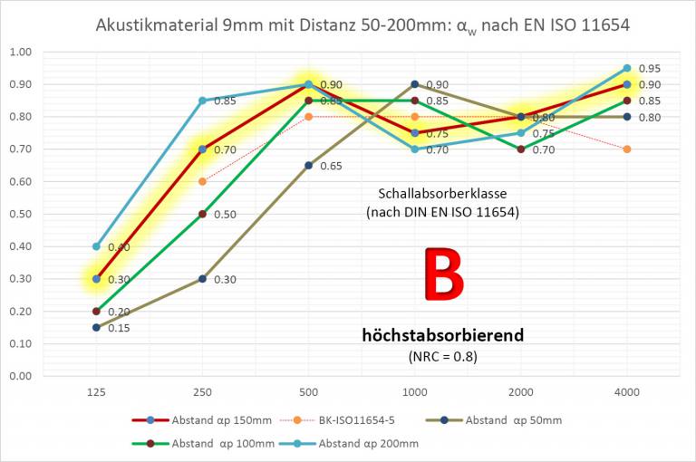 Eine gute Schallabsorption benötigt einen Abstand (Hohlraum) zwischen Absorber und einer schallharten Fläche. Je größer der Abstand, desto mehr werden die tiefen Töne mit absorbiert. ...