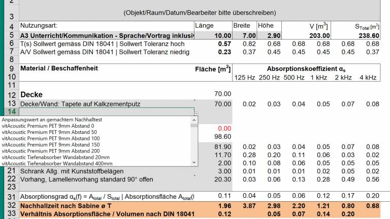 Ich finde im Internet keine Verbindungen zwischen A und B, da bei A nur nach einem Nachhallzeit-Korridor gefragt wird und bei B nach dem A/V Verhältnis.