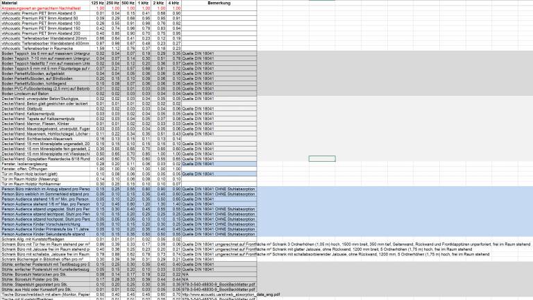 Raumgruppe A : "Räume mit einer Hörsamkeit über mittlere und größere Entfernung, bei denen es neben einer dem Verwendungszweck entsprechenden Grundbedämpfung der Geräuschpegel auf eine ausreichende Versorgung aller anwesenden Personen mit Schallenergie ankommt."