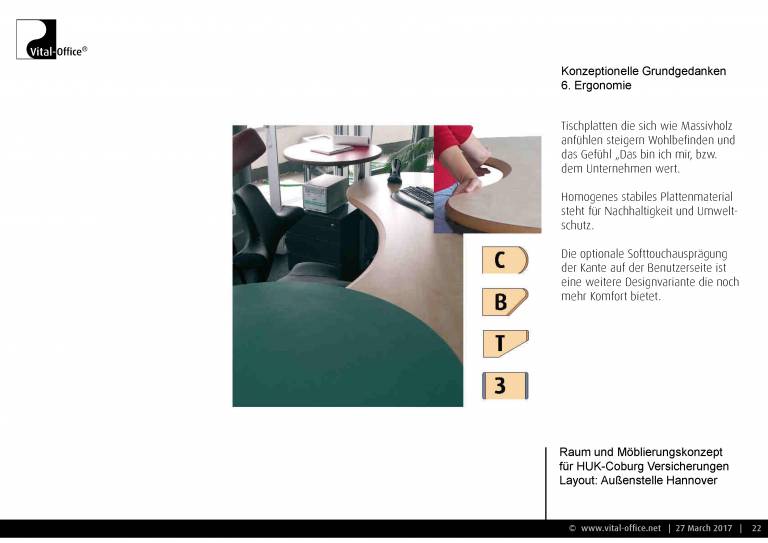 Anthropometrische - nach den Maßen des Menschen - geformte Tischplatten bieten zudem: