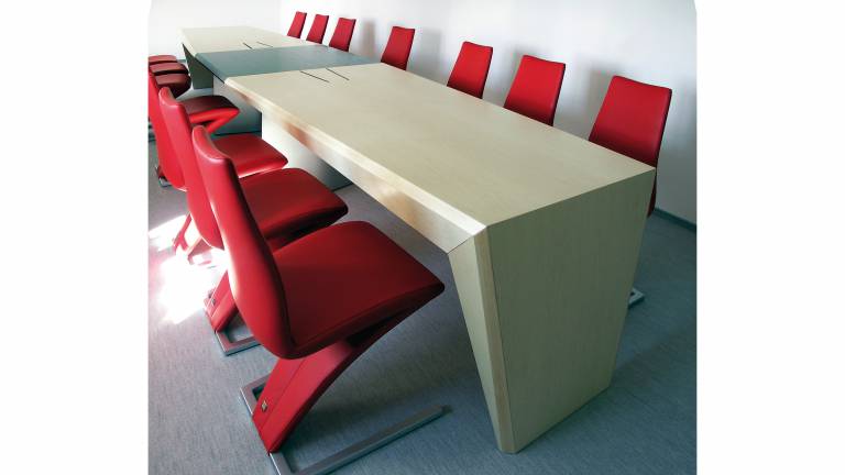 雕塑艺术建筑。凭借其明确的设计和其精细调谐的功能,脸是基地台系统的创新、 成功和健康的工作。样式的的一个明确的决定。简约、 酷和感官吸引人 — — 这些都是这种大胆的家具设计。关节突流引导视线和打开房间的空间。面对会议表包括 2 镜像的脸基表。会议桌的总长度可以通过直适配器单独变化。