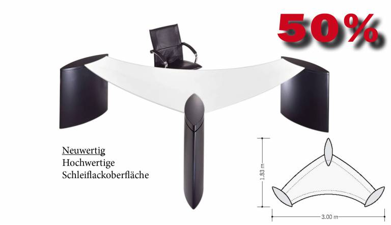 Als Büromöbelhersteller erhalten wir kontinuierlich Ware aus Bemusterungen bei Kundenprojekten retour. Diese Teile bieten wir direkt ab Hersteller zu wesentlich vergünstigten Konditionen an. Dabei können die Teile mit allen Standardprodukten von unserem modularen System individualisiert und kombiniert werden. Gleichzeitig können wir Ihnen weitere Produkte i.d.R. in gleicher Ausführung passend dazu produzieren, so dass Sie sofort oder zu einem späteren Zeitpunkt Ihre Büros passend ergänzen können. Ausstellungsangebote sind nur gültig so lange Vorrat reicht, Zwischenverkauf ist vorbehalten. Die Ausstellungswaren sind im Ramen von Musterstellungen oder Eigengebrauch genutzt. Geringfügige Mängel und Schraubenlöcher von verschiedenen Gestelltypen auf der Tischunterseite sind zum Teil vorhanden.