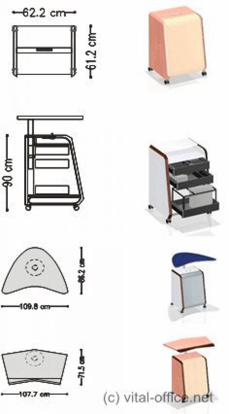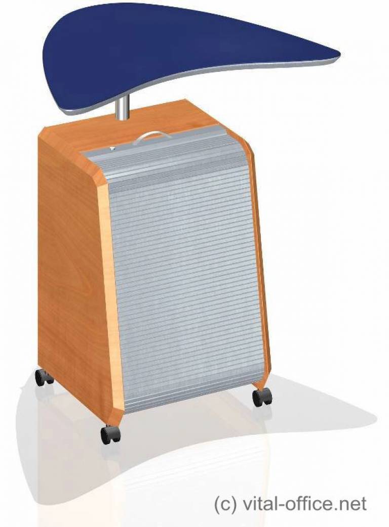 Height adjustable top and roller shutter cabinet with individual equipment components.
