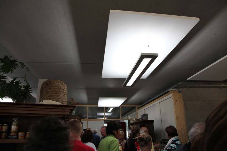 3d-Akustikelemente sorgen für ein Maximum an Schallabsorption (95 %) und sind mit indirekter Beleuchtung mit True Light Beleuchtung kombiniert.