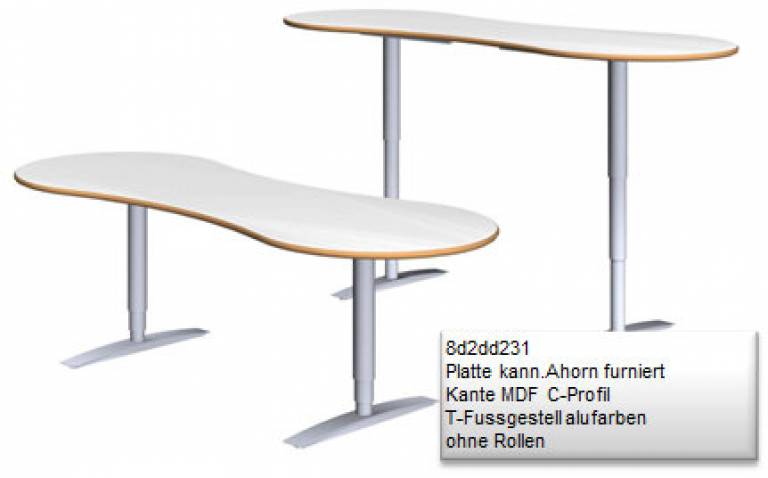 Example of an executive desk with top in Swiss Pear wood, chrome bases and blue protection.