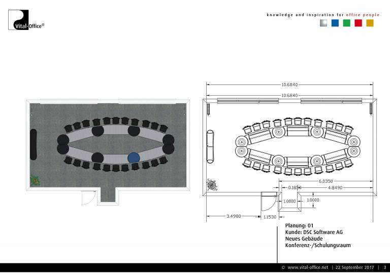 Ein schon langjähriger Kunde, der uns immer wieder in sehr positivem Sinne fordert und Steine ins Rollen bringt, die uns letztlich gemeinsam einen großen Schritt nach vorne bringen. Hier ein gelungener Schulungsraum mit flexiconference Konferenztischen, bei dem im Nachhinein noch Akustikmaßnahmen in Form von schallabsorbierenden Decken- und Wandelementen geplant wurden. -> Akustikrechner nach DIN 18041 mit Berechnung dieses Konferenzraumes