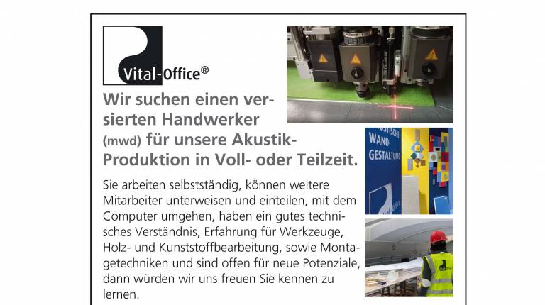 Wir suchen einen versierten Handwerker (mwd) für unsere Akustik-Produktion in Voll- oder Teilzeit.