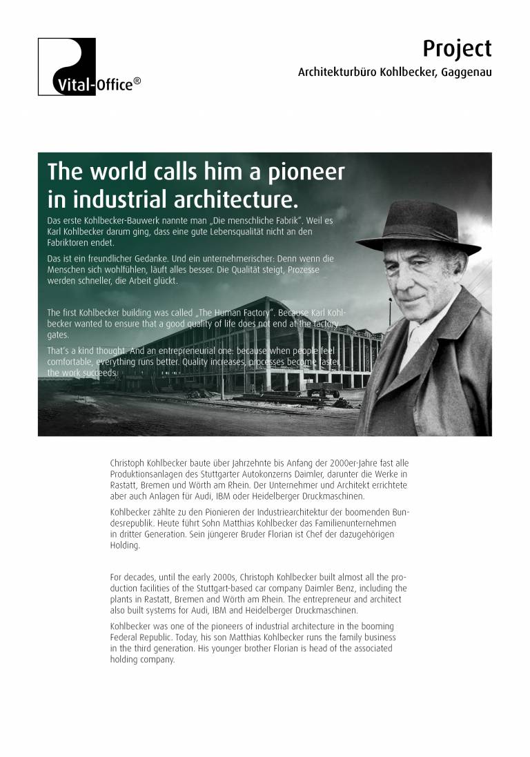 Kohlbecker was one of the pioneers of industrial architecture in the booming Federal Republic. Today, his son Matthias Kohlbecker runs the family business in the third generation. His younger brother Florian is head of the associated holding company.