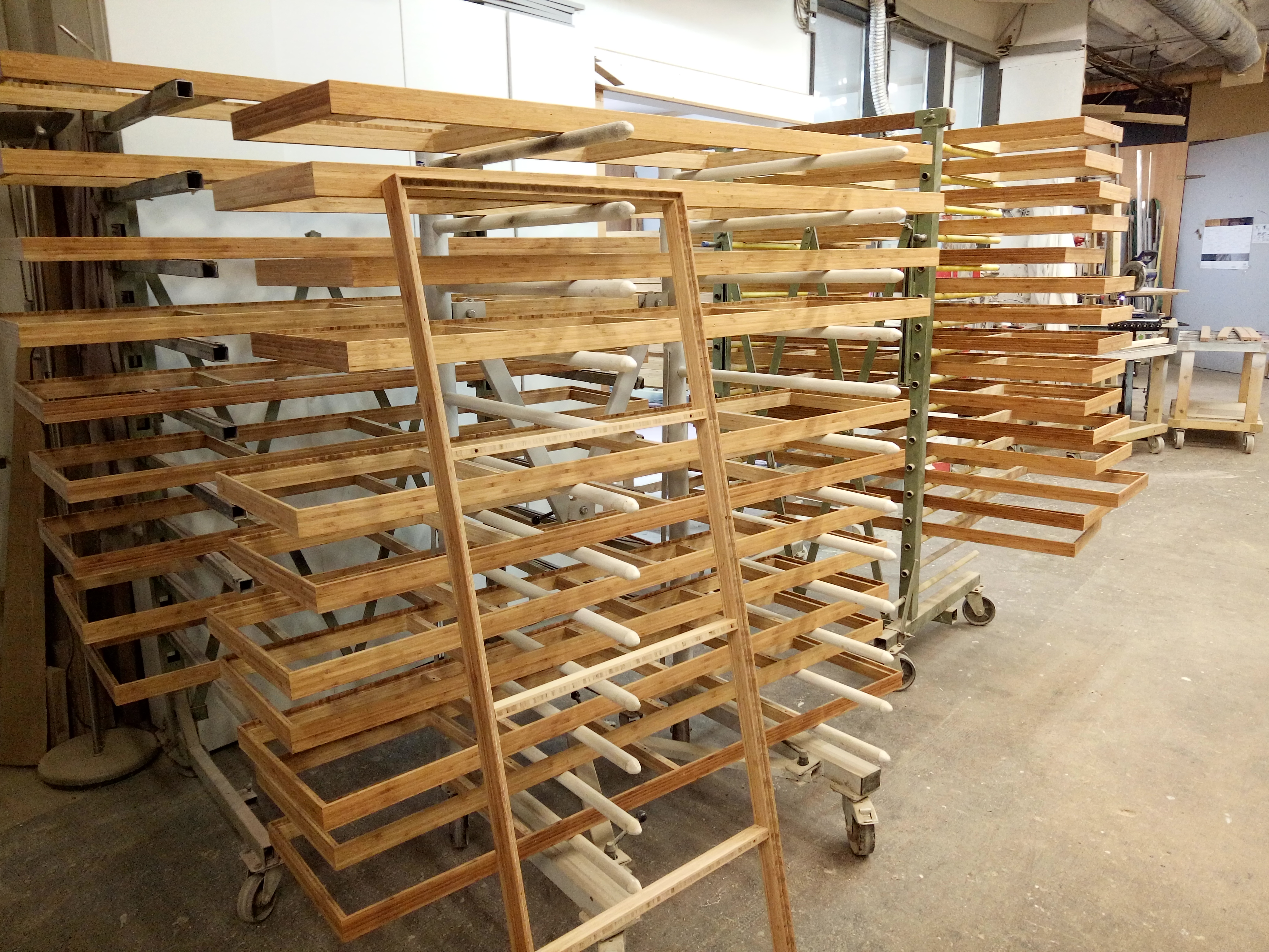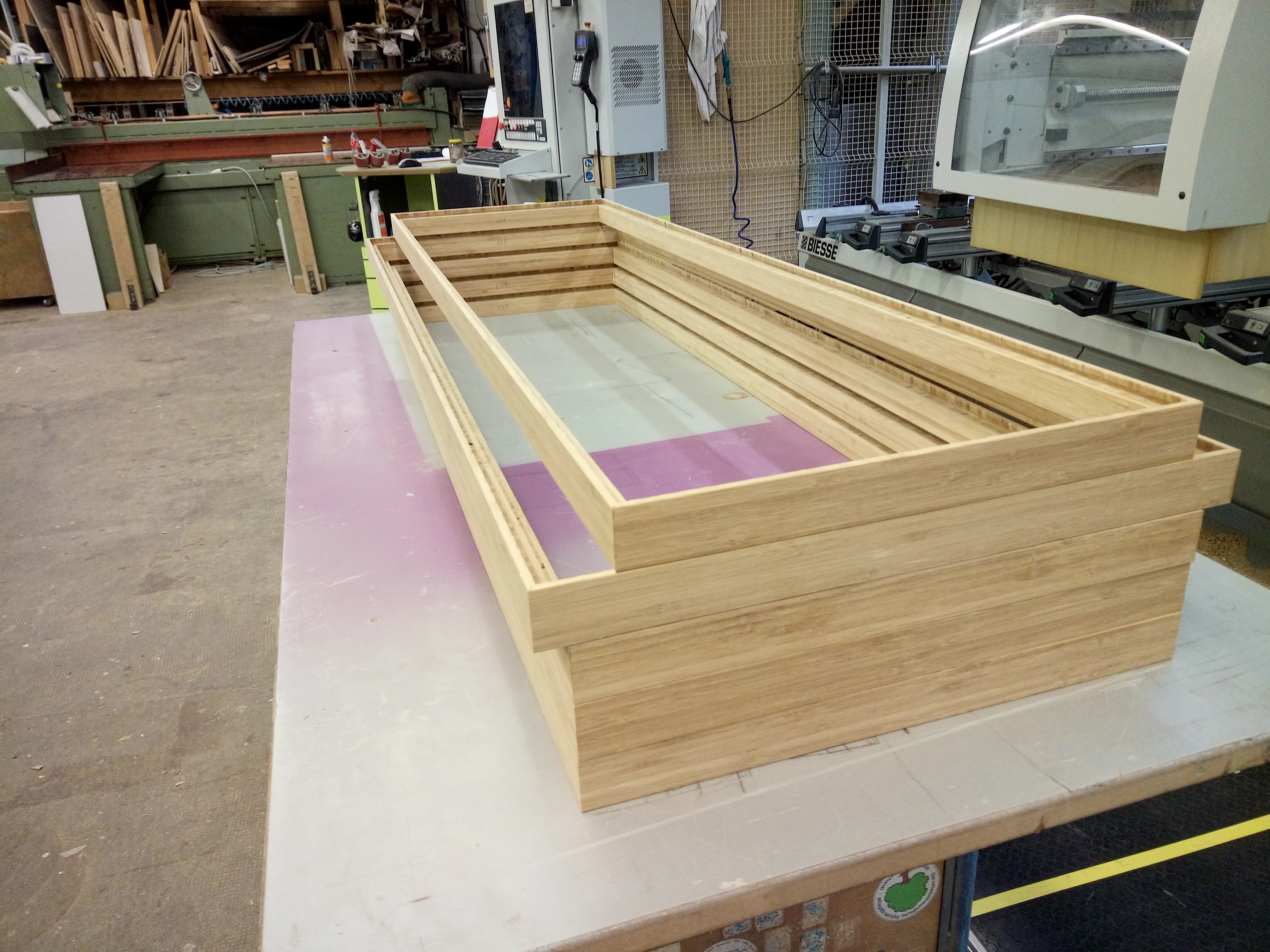 然后我们一起决定 vitAcoustic 帧。一个解决方案, 使多功能的个人墙设计与纺织吸收器多达50种颜色。板材被剪裁入特殊框架由生态学竹子固体木工具制成, 藉以框架提供必要的缓冲距离到酣然的表面, 因此甚而更低的频率被相等地被吸收。
