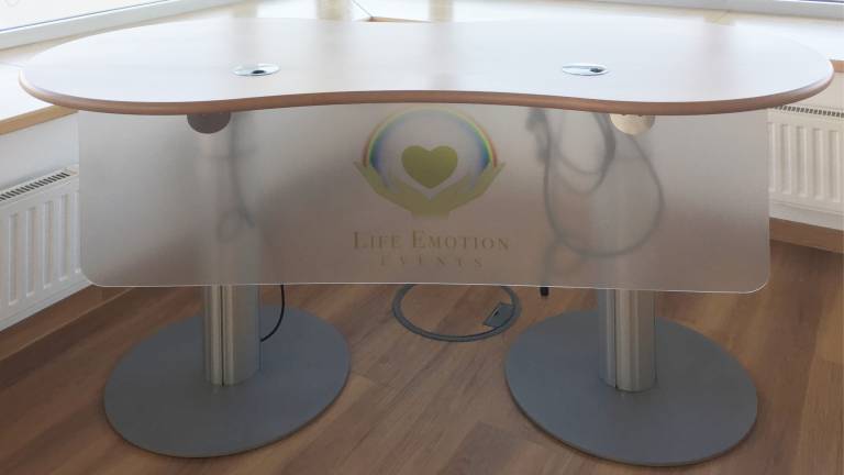 Als Büromöbelhersteller erhalten wir kontinuierlich Ware aus Bemusterungen bei Kundenprojekten retour. Diese Teile bieten wir direkt ab Hersteller zu wesentlich vergünstigten Konditionen an. Dabei können die Teile mit allen Standardprodukten von unserem modularen System individualisiert und kombiniert werden. Gleichzeitig können wir Ihnen weitere Produkte i.d.R. in gleicher Ausführung passend dazu produzieren, so dass Sie sofort oder zu einem späteren Zeitpunkt Ihre Büros passend ergänzen können. Ausstellungsangebote sind nur gültig so lange Vorrat reicht, Zwischenverkauf ist vorbehalten. Die Ausstellungswaren sind im Ramen von Musterstellungen oder Eigengebrauch genutzt. Geringfügige Mängel und Schraubenlöcher von verschiedenen Gestelltypen auf der Tischunterseite sind zum Teil vorhanden.