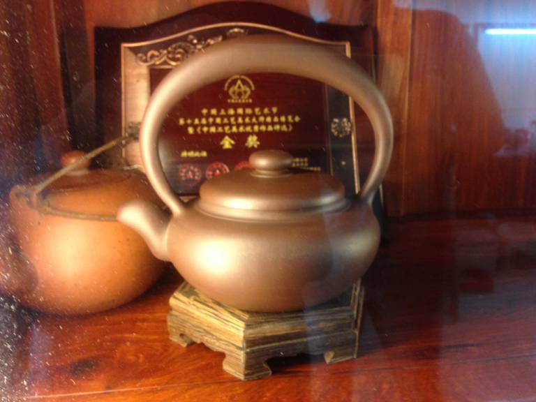 The other store belongs to a famous teapot maker. 2 young women were sitting on the worktable and modelling parts of the teapot. They were learning the task of teapot making. To study these skills you need 2 years learning, while each year you need pay a 20.000 RMB fee plus gifts to your teacher. Only after 2 years you are allowed to make your first complete teapot. The teapots from unknown graduated students are cheaper in price and may lack some advanced techniques of making. Anyway, these pots are already a precious handcrafted valuable teapot. They say, that after 5 years you may become a skilled craftsman, but as usual, not everybody becomes famous. So you can get very good handcrafted teapots at a affordable price and also can get expensive teapots from famous craftsman.