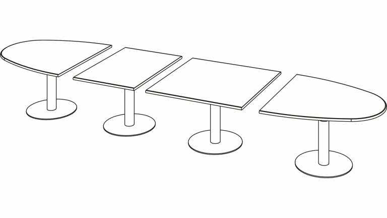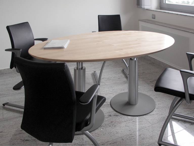 模块化会议表与列基地与更多的腿部空间。椭圆或船形。(可选) 进行机动或气体弹簧列站立高度调整。