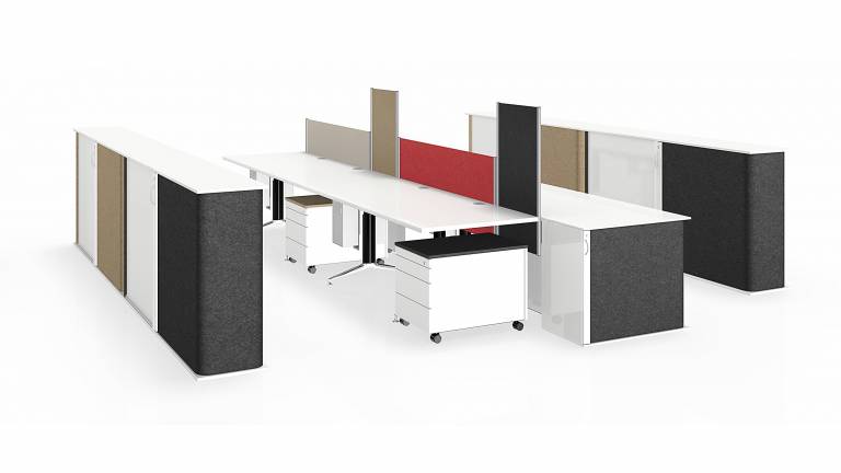 如果你把这些模块化的橱柜作为一个房间的分隔器, 并选择我们的 vitAcoustic 声音减震器的正面和背面, 你已经创造了一个更好的房间声学与一些手段。