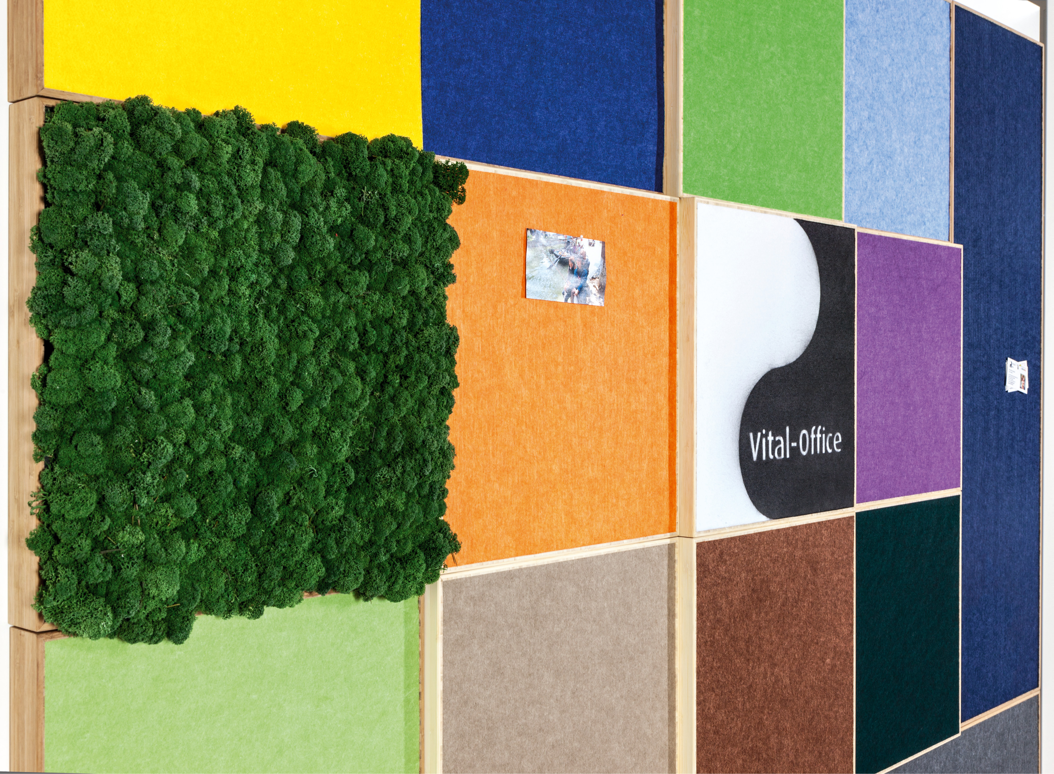 非常个人的想法可以通过打印装饰,个人照片或公司口号来实现。当不同的苔藓类型和彩色的吸音板结合在一起时,常绿的元素尤其令人印象深刻。用于测量:在有色玻璃和吸音板上透明或半透明的自然元素。设计你的个人声学自然图片与19 vitAcoustic颜色和真正的干草,干草花和苔藓。