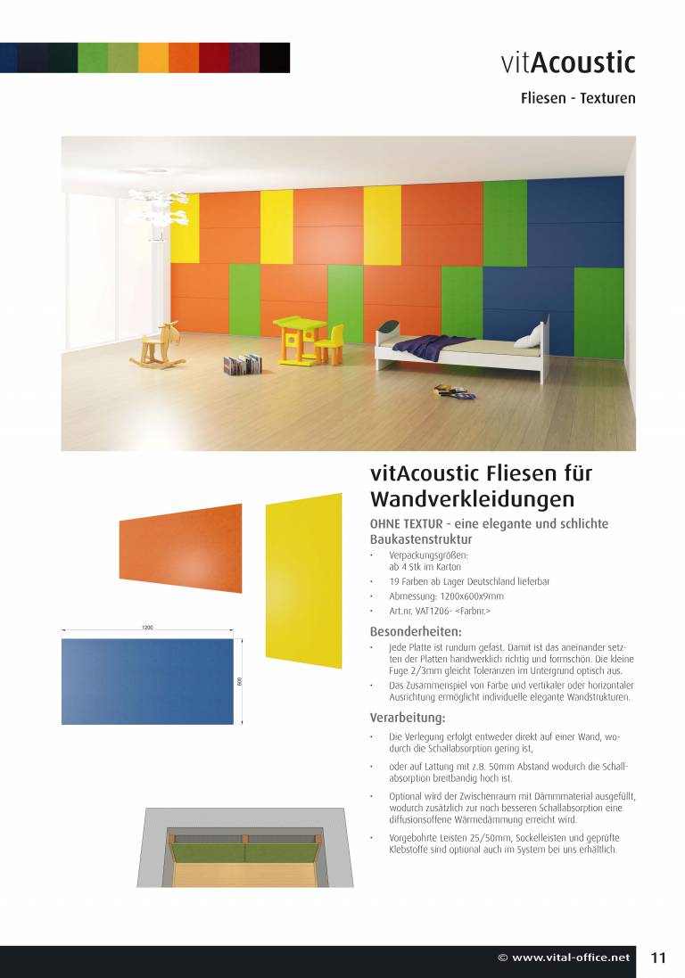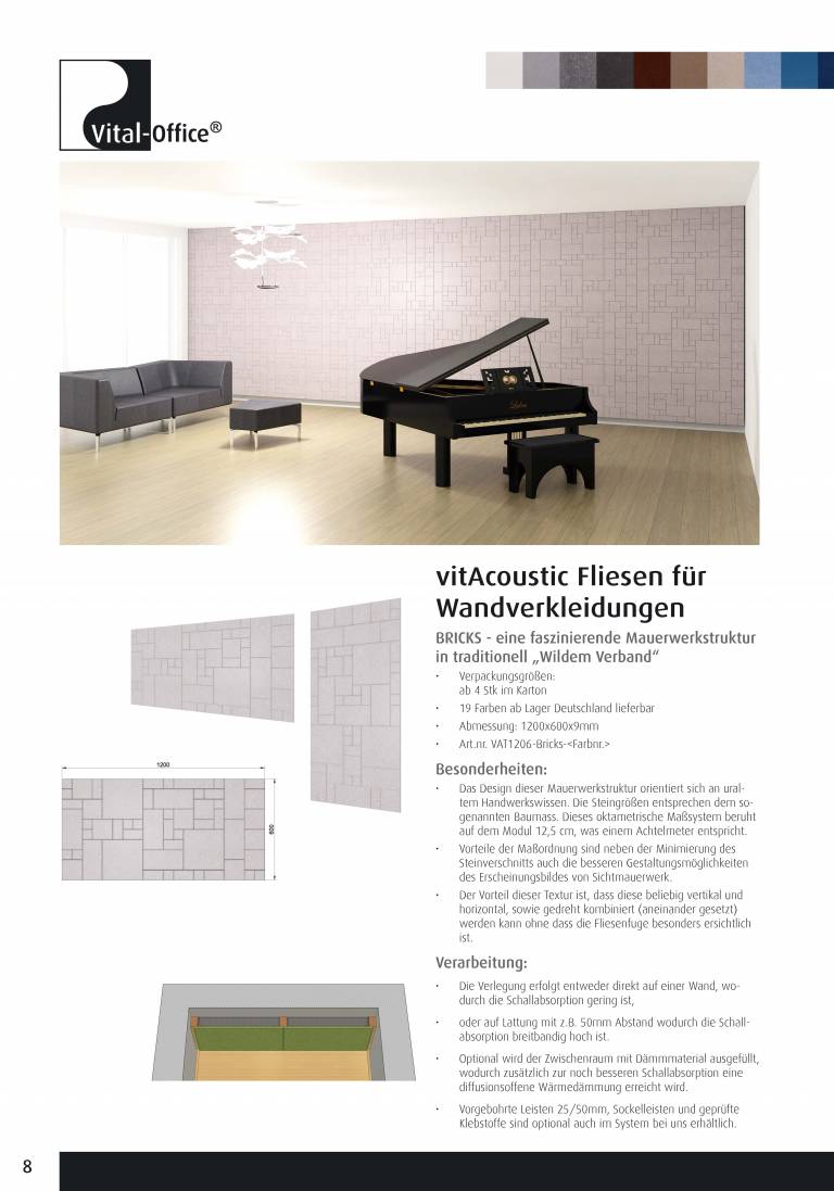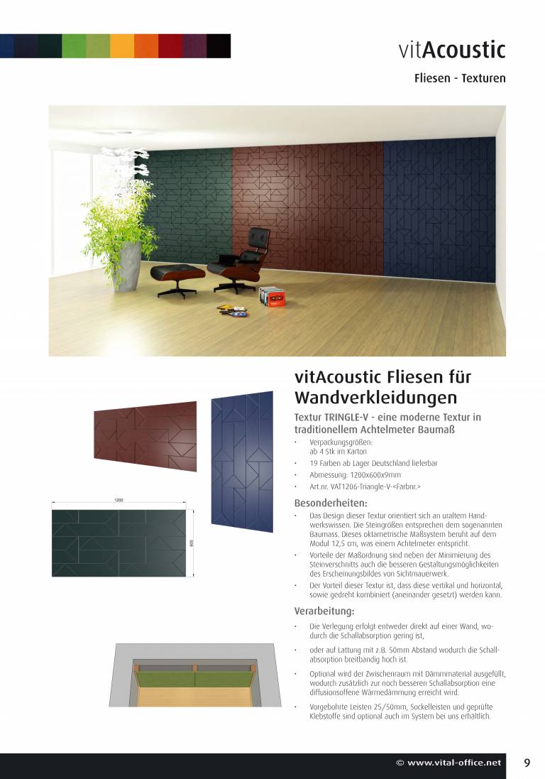 VitAcoustic® Fliesen für Wandverkleidungen - praktisch einfache und dekorativ vielfältige Schall- und Wärmedämmung