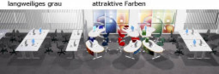In view of this simple logic, is it not almost perverse when offices are installed with furnishings in all possible shades of grey? Different shades of grey on walls, ceilings and furniture in the office do not only affect the mind but also creativity, focus and productivity. This affects all the employees from the operative employee through to the managing director.